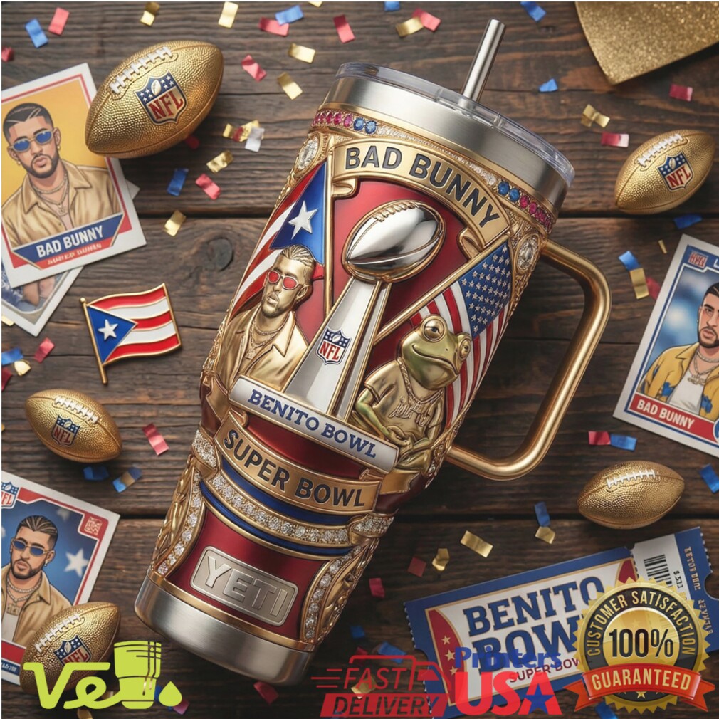 Reguetón meets the gridiron. This embossed Bad Bunny Benito Bowl tumbler celebrates the Puerto Rican superstar’s Super Bowl moment with island pride and NFL energy. A bold, festive gift for Bad Bunny fans who know that when Benito shows up, the whole world tunes in.