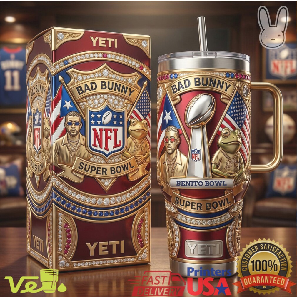 (Bad Bunny Benito Bowl NFL Super Bowl 40oz Tumbler Puerto Rico Pride Embossed Design Tumbler)