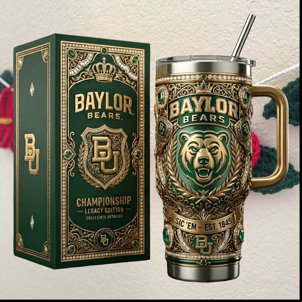 Elevate your fan collection with the Baylor Bears Sic Em Championship Legacy Edition 40Oz Tumbler With Handle 40oz premium insulated tumbler. Featuring stunning collector-grade artwork, double-wall vacuum insulation to keep drinks cold for 24+ hours, and a durable stainless steel build — this is the tumbler built for true fans and serious collectors.
