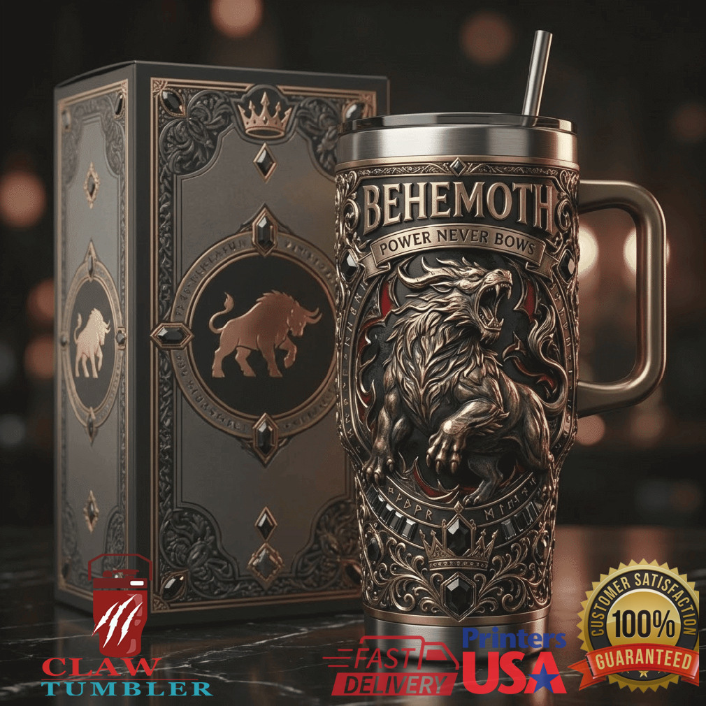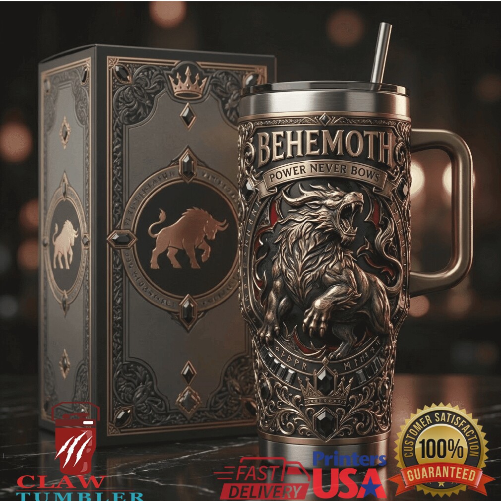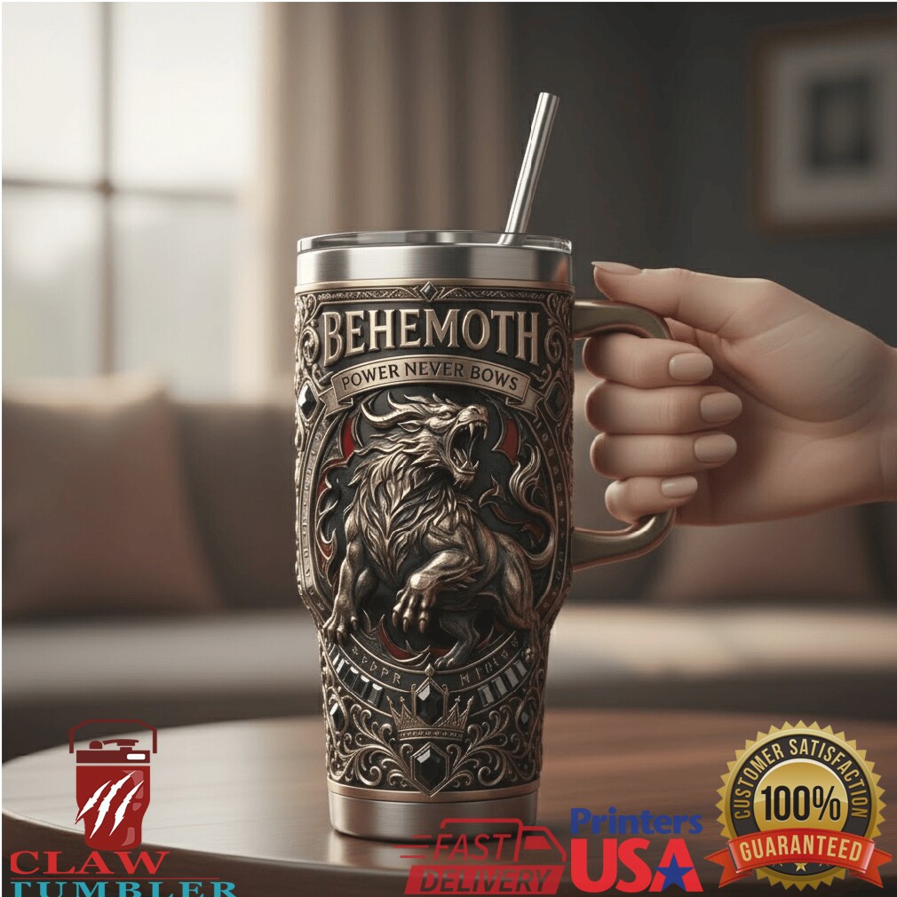 (Behemoth Bull Power Never Bows Gothic Embossed 40oz Tumbler with Handle)