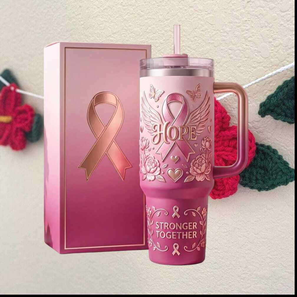 Show your support and solidarity with this beautiful breast cancer awareness tumbler. The pink ribbon design paired with a hopeful message makes it a thoughtful gift for survivors, fighters, and supporters alike.