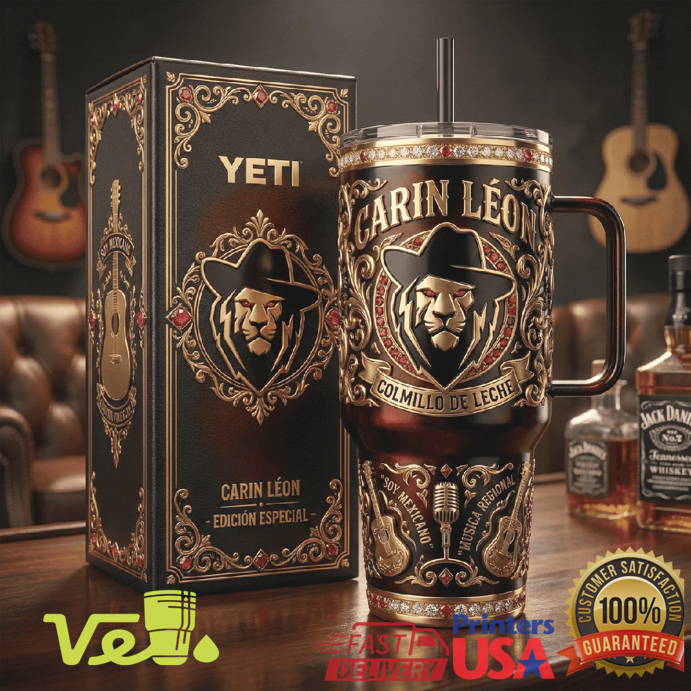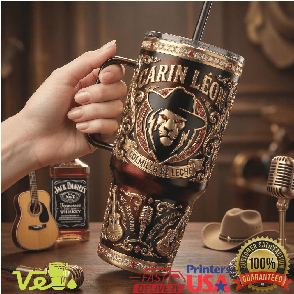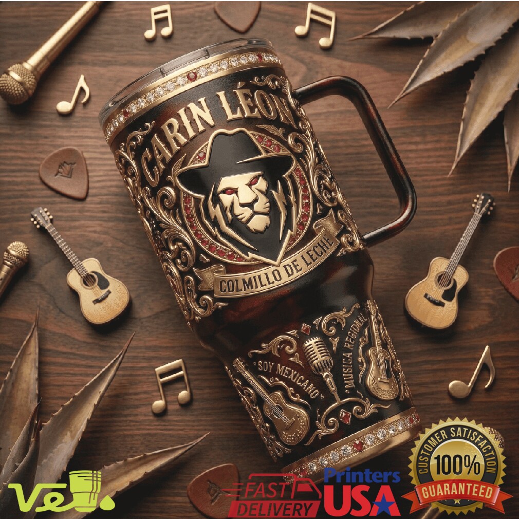 Colmillo de Leche — el tumbler edición especial para el rey del regional mexicano. Esta pieza de colección de 40oz celebra a Carin León con arte del león lleno de poder y orgullo. Para los fans que saben que la música buena se saborea despacio.
