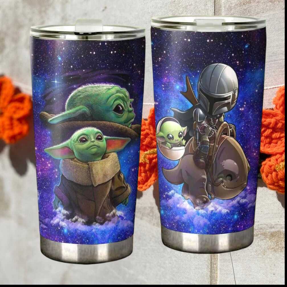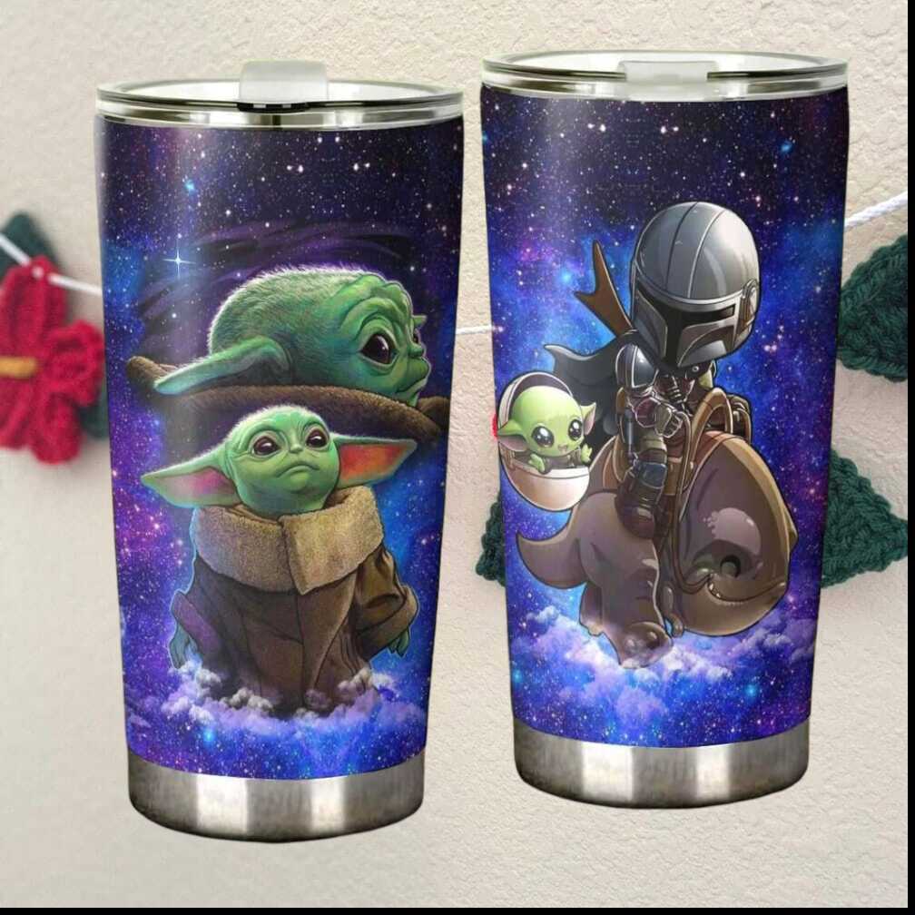 (Chibi Mandalorian and Grogu Riding Blurrg Starry Night Tumbler)