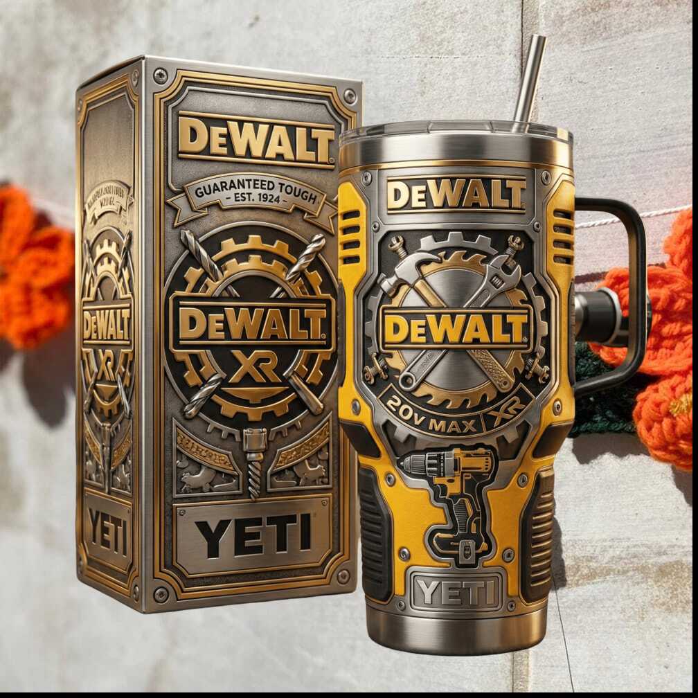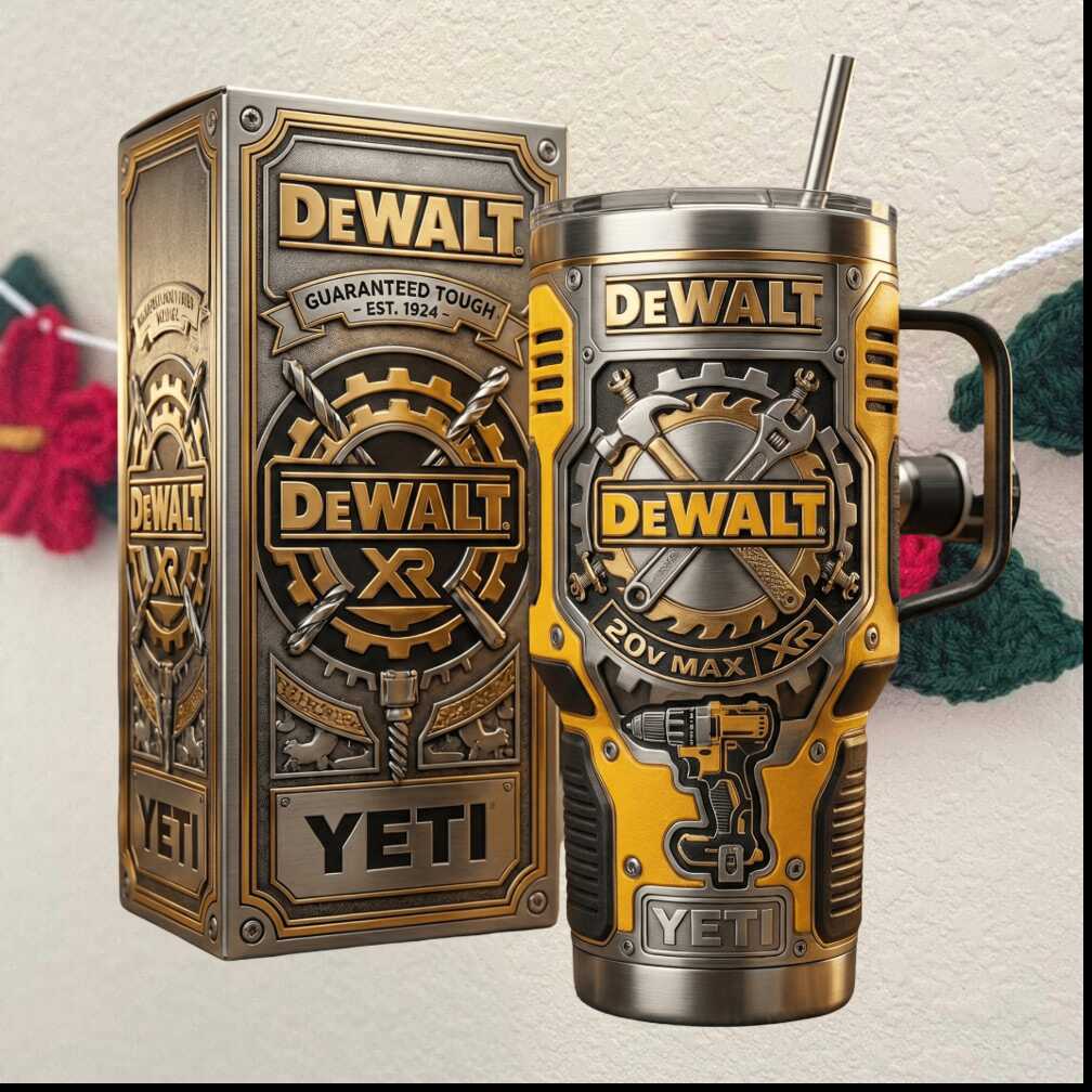 Guaranteed tough — just like the tools. This DeWalt-inspired 40oz heavy-duty tumbler in bold Yellow & Steel is built for the worksite and the weekend. Rugged construction, double-wall insulation, and that unmistakable DeWalt energy that gets the job done.