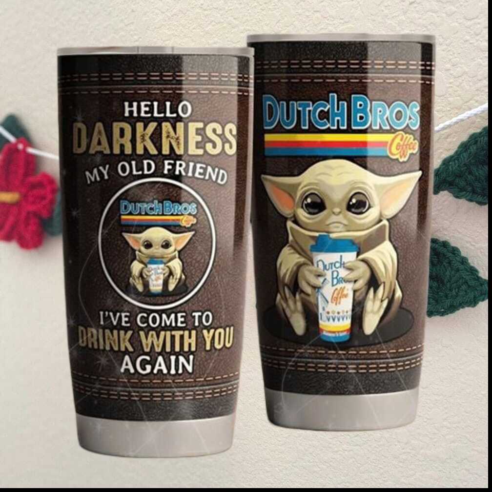 (Dutch Bros Coffee “Hello Darkness My Old Friend” Baby Yoda Faux Leather Tumbler)