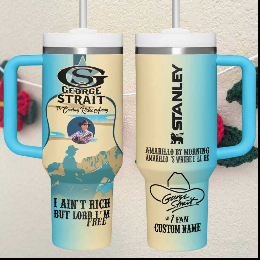 (George Strait Amarillo By Morning Cowboy Rides Away Custom Name 40oz Tumbler)