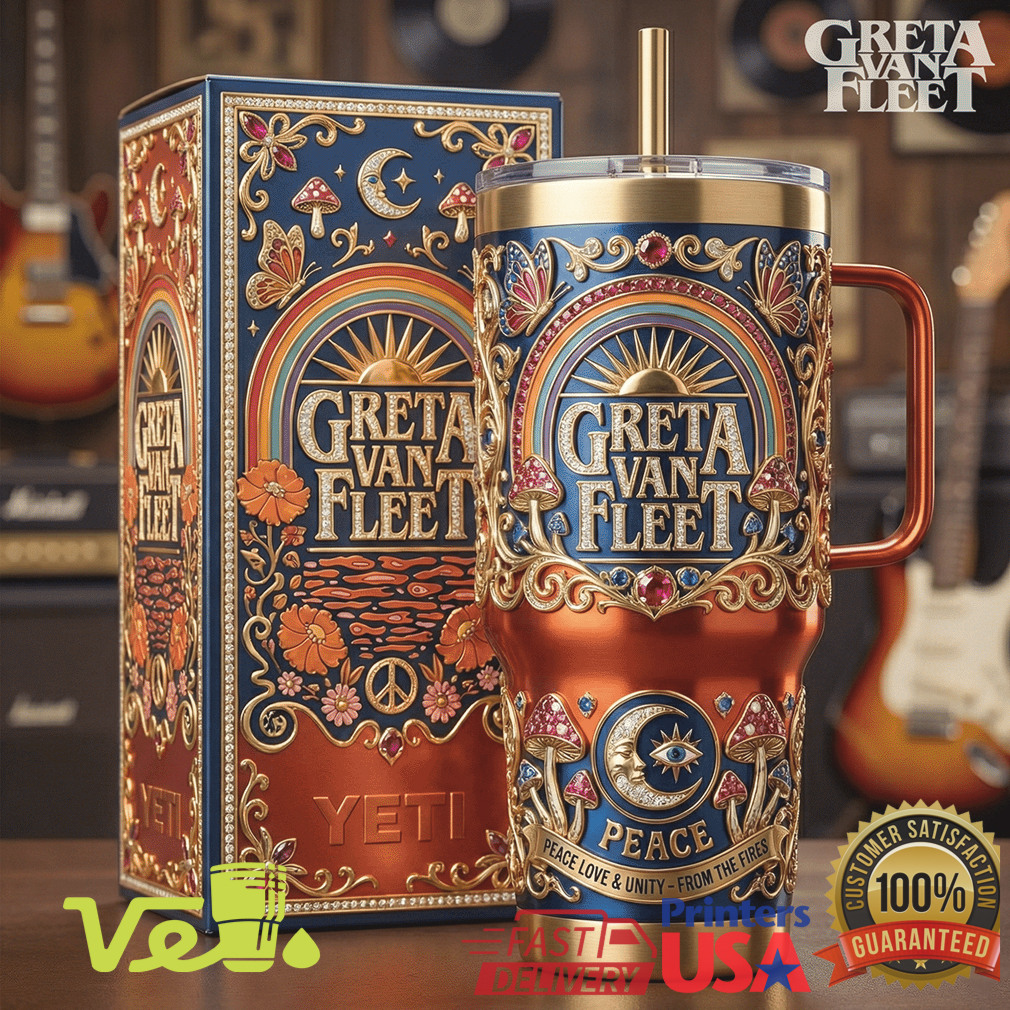 Rock is reborn — and Greta Van Fleet brought it back. This Peace, Love & Unity 40oz tumbler celebrates the band’s soaring, timeless sound with an aesthetic as warm and electric as their music. For believers in rock’s beautiful, unending future.