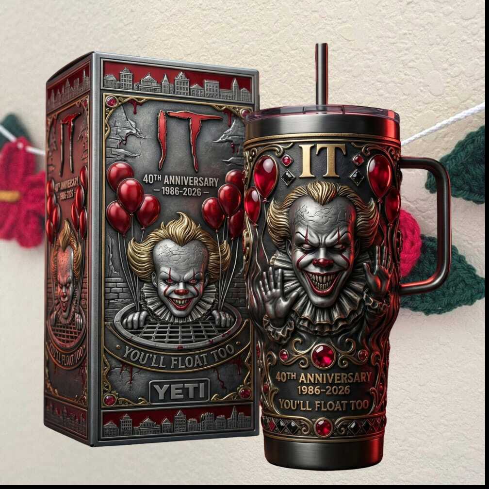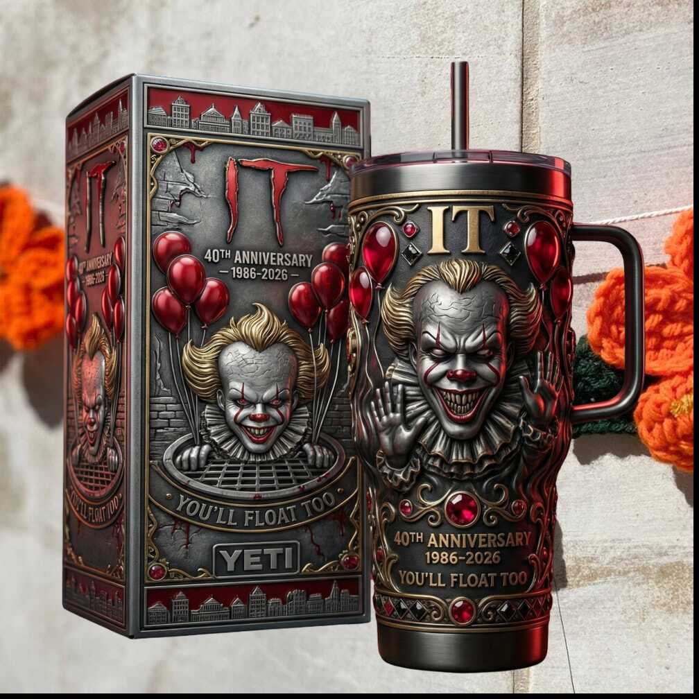 You’ll float too — and your drink will stay cold. This IT Pennywise 40th Anniversary 1986–2026 horror 40oz tumbler is a collector’s nightmare in the best way. Iconic Pennywise artwork, premium insulation, and gothic horror design for fans who aren’t afraid of the dark.