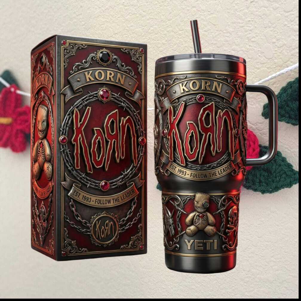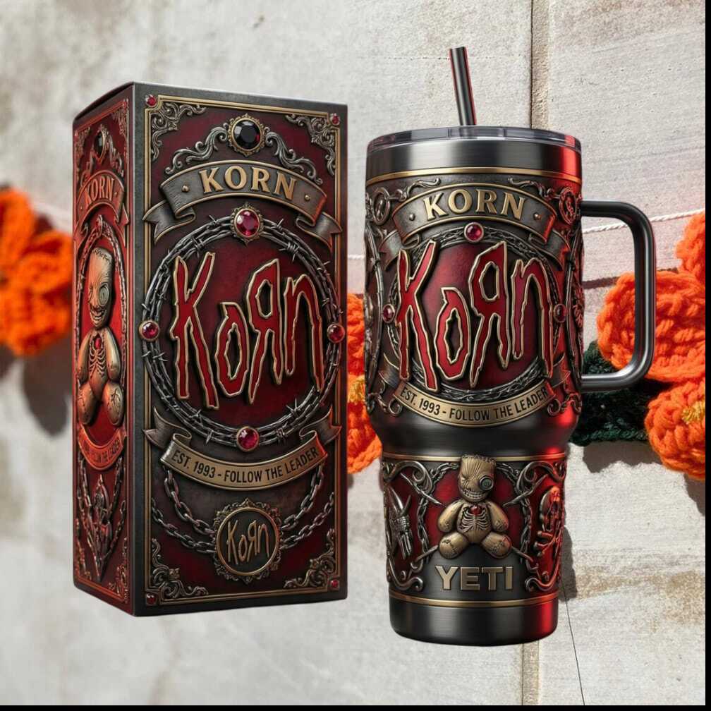 (Korn Follow The Leader 40oz Tumbler 3D Embossed Style Metal Music Fan Gift)
