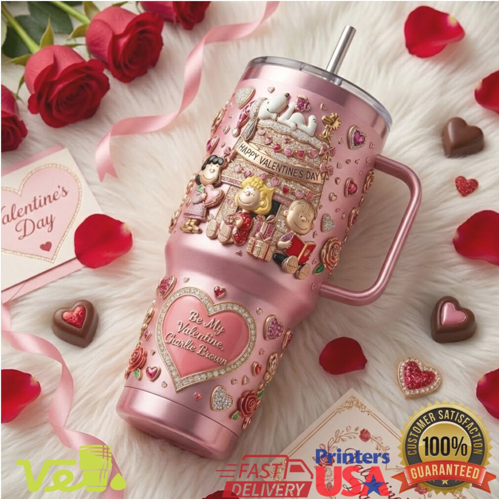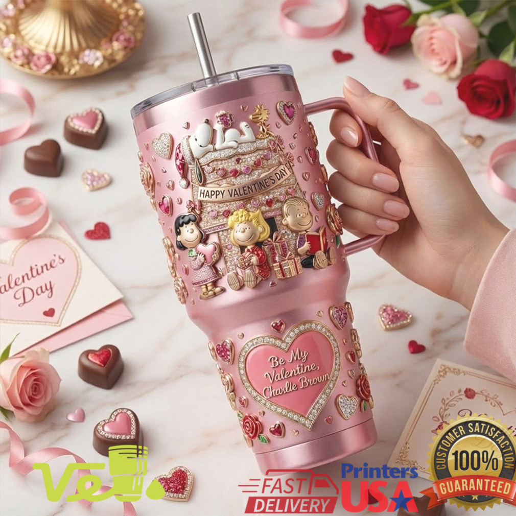 (Peanuts Be My Valentine Charlie Brown Snoopy Pink 40oz Tumbler)