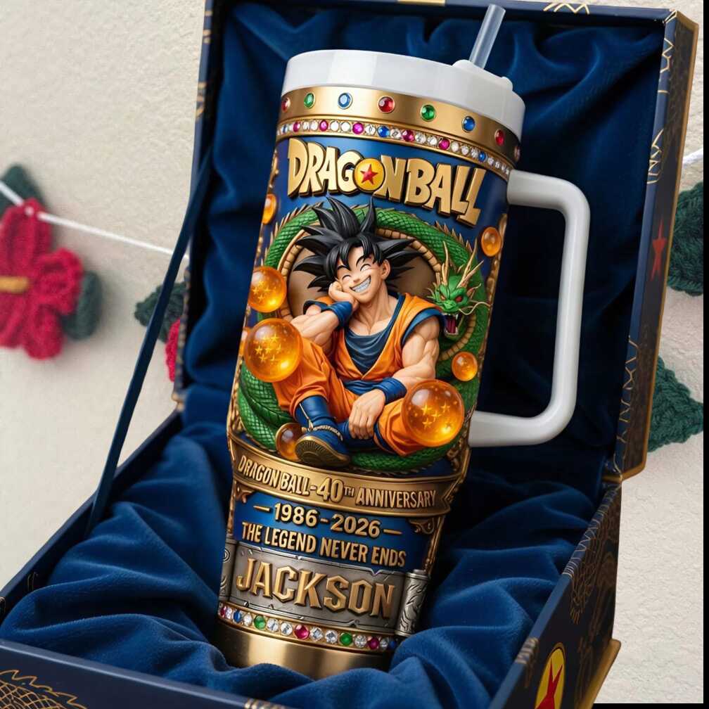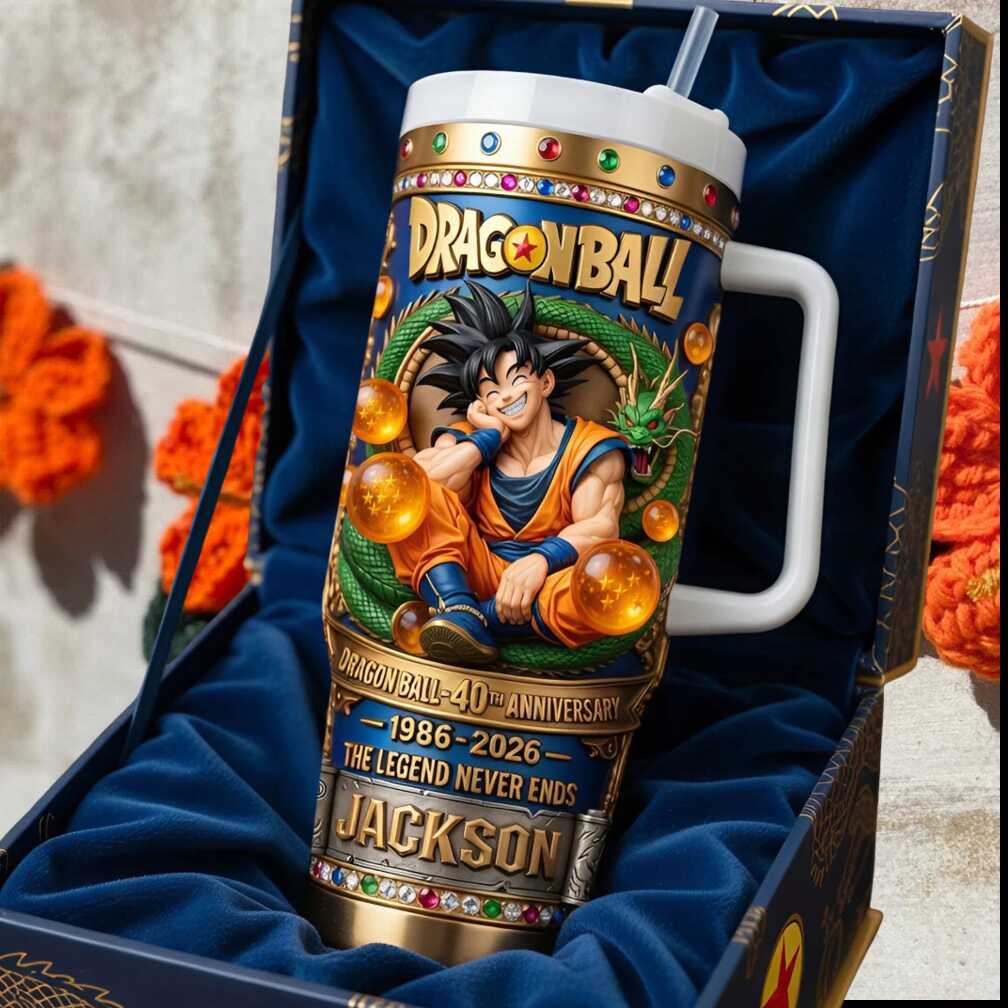 Commemorate 40 epic years of Dragon Ball with this personalized Goku collector’s tumbler. A custom keepsake for fans who’ve powered up alongside the Saiyan legend since day one.