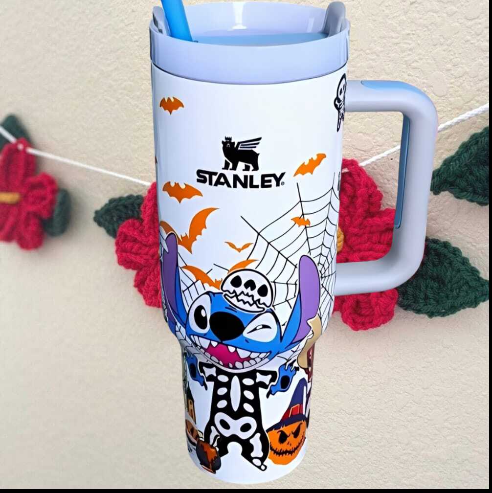Stitch gets spooky for Halloween in this personalized skeleton-themed insulated tumbler. A fun and festive gift for Disney fans who love their holiday drinkware with a little ghoulish charm.