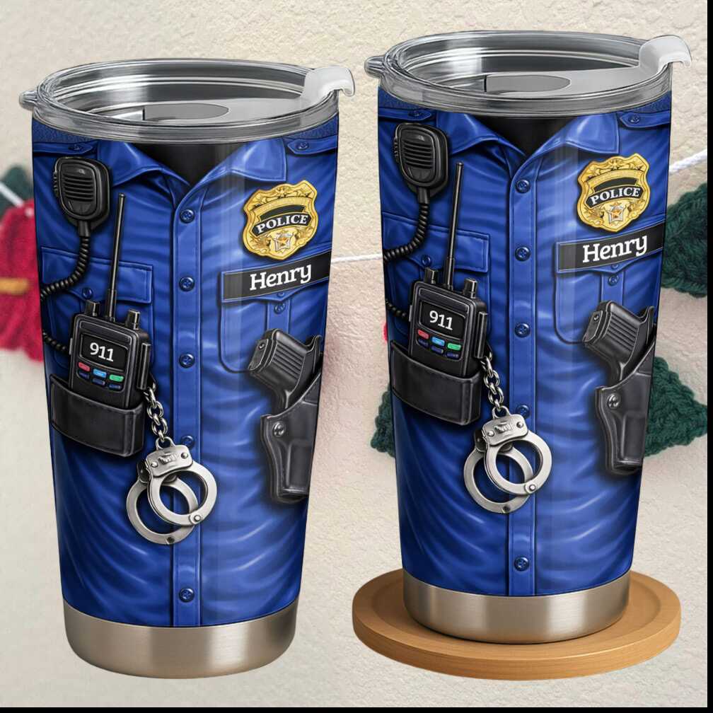 (Personalized Police Officer Uniform Tumbler Custom Name Law Enforcement Gift)
