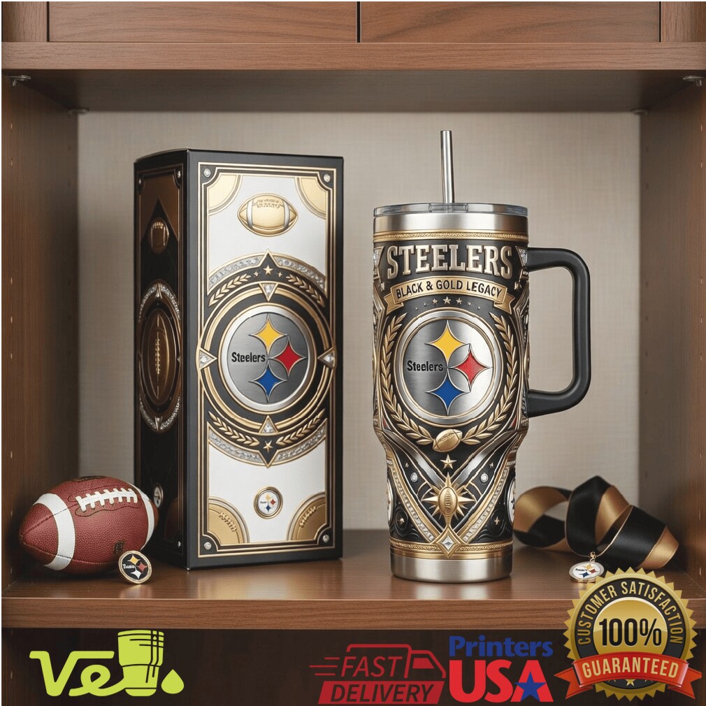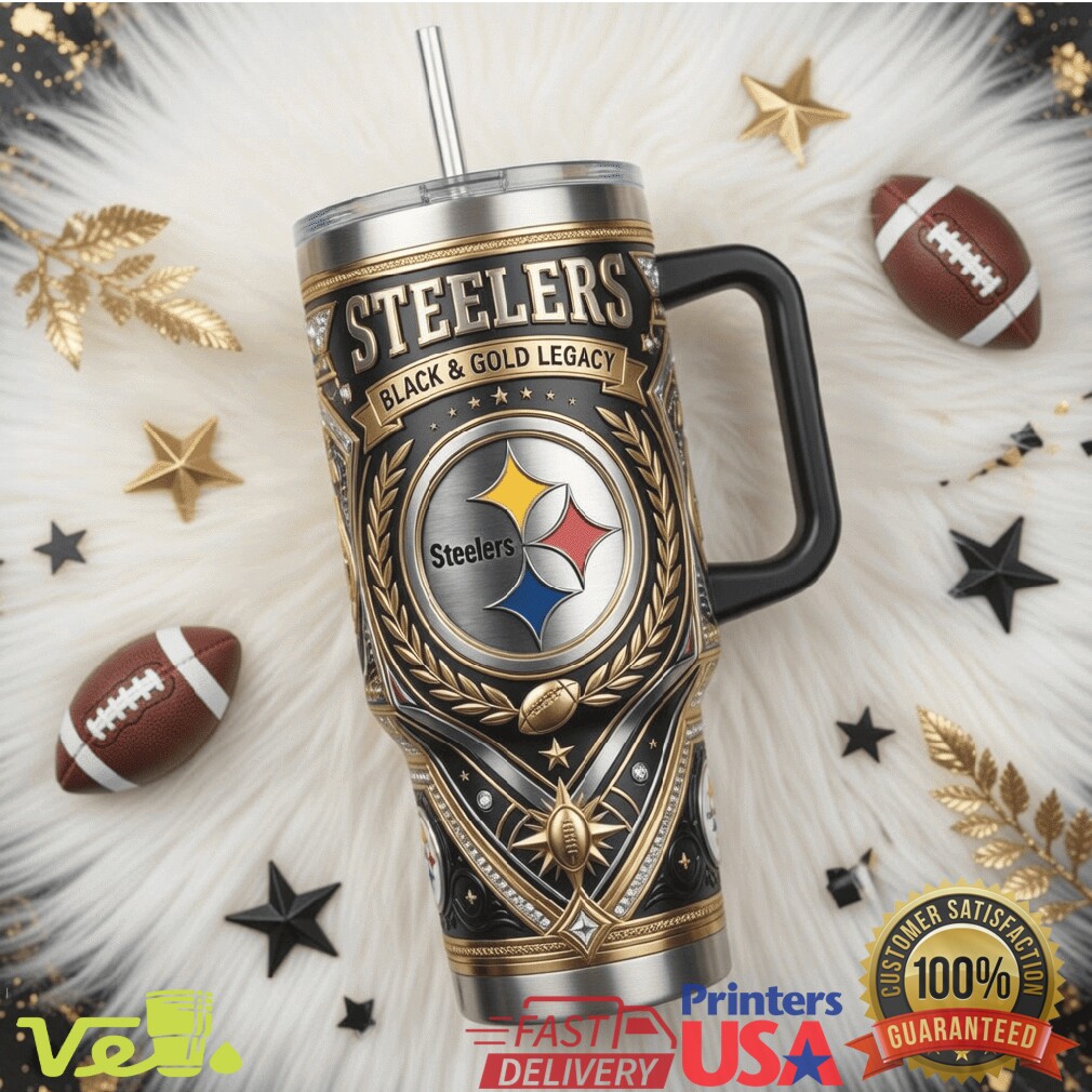 (Pittsburgh Steelers Black Gold Legacy NFL Edition 40oz Commemorative Tumbler)