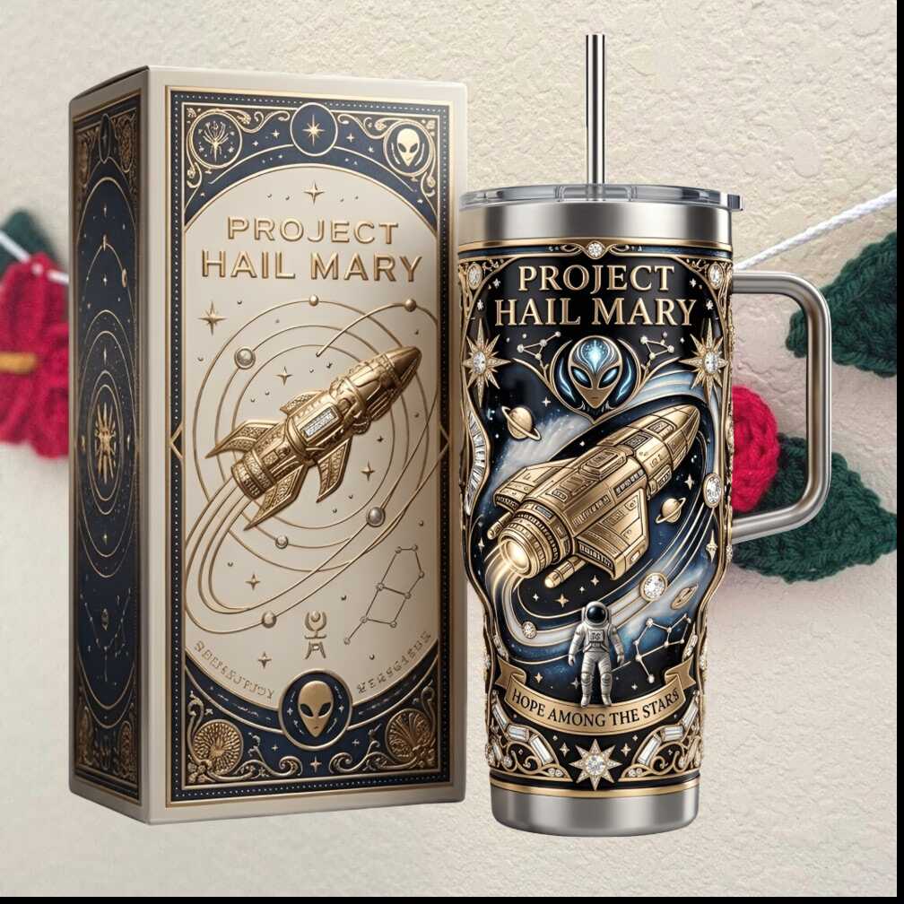A lone astronaut. A desperate mission. The perfect tumbler. This Project Hail Mary Sci-Fi Novel Inspired 40oz space tumbler is a collector’s tribute to Andy Weir’s masterpiece — cosmic artwork, deep-space color palette, and premium insulation for readers who explore the universe one page at a time.