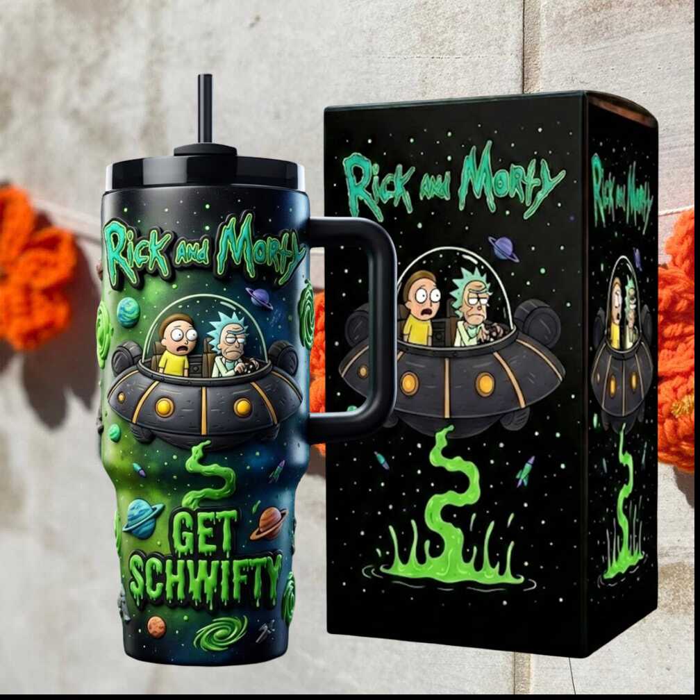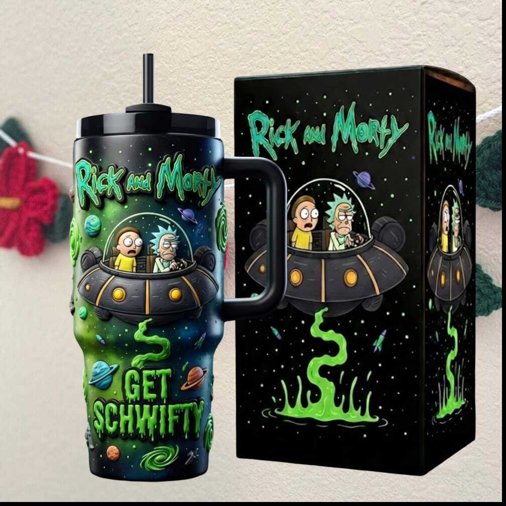 (Rick and Morty Get Schwifty Space Adventure 3D Embossed Tumbler)