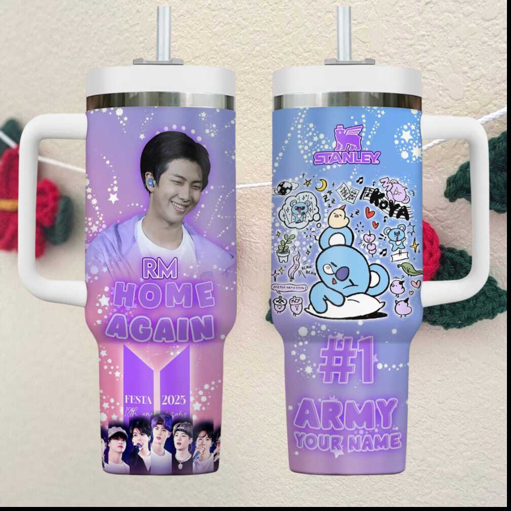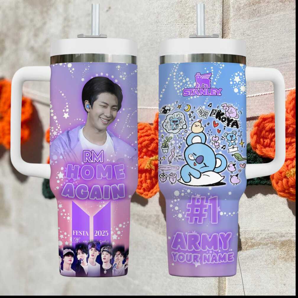 (RM Home Again BTS Festa Tumbler Custom #1 ARMY Koya BT21 Fan Gear)