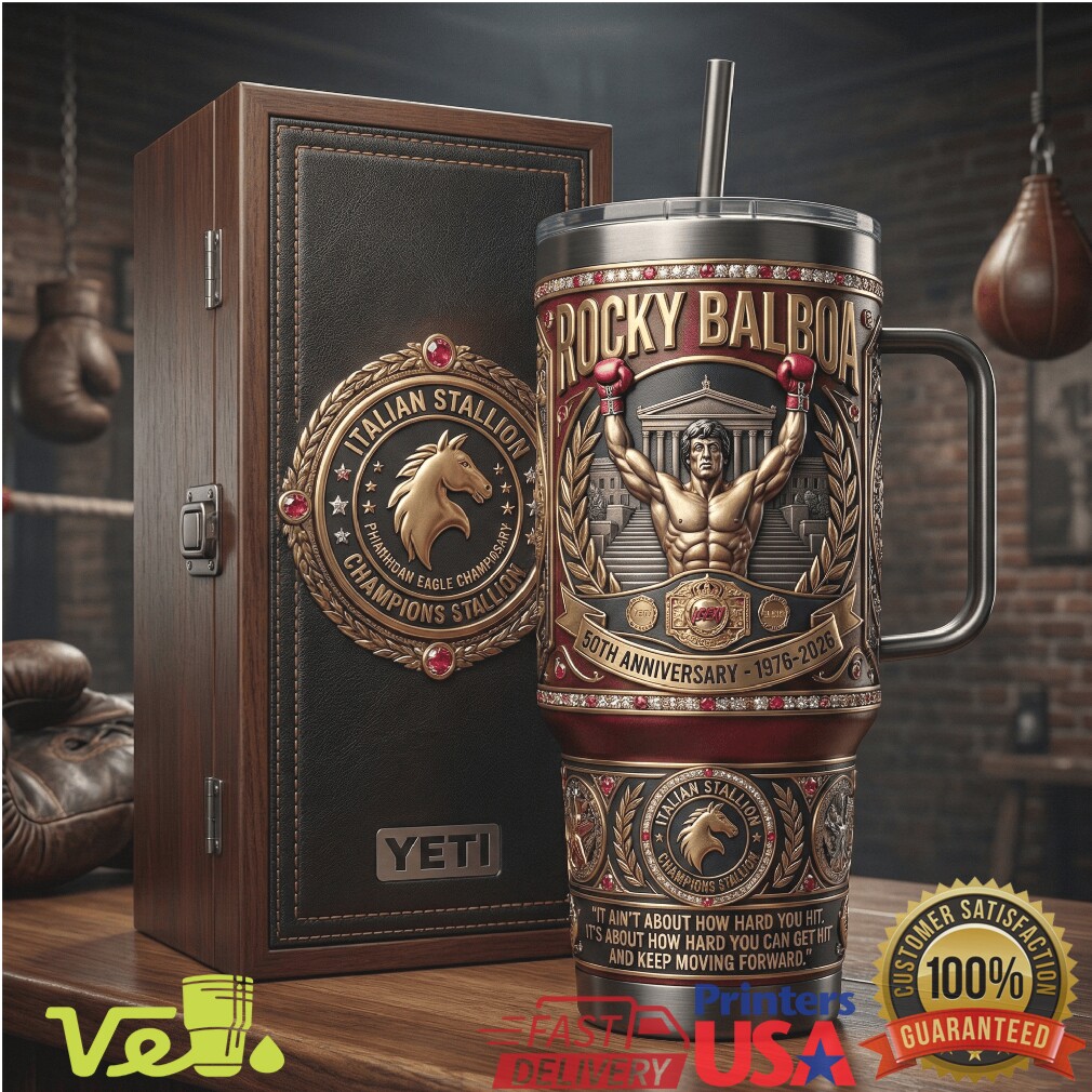 Yo Adrian — it’s the 50th Anniversary! This Italian Stallion embossed Rocky Balboa tumbler celebrates five decades of the greatest underdog story ever told. Bold, triumphant design for fans who still get chills every time they hear Gonna Fly Now.
