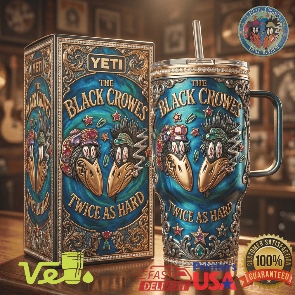 Twice as hard, twice as good — this vintage rock-style Black Crowes 40oz tumbler channels the Southern rock soul of the band that never compromised. Rich retro design for fans who know Shake Your Money Maker by heart and still play it loud.