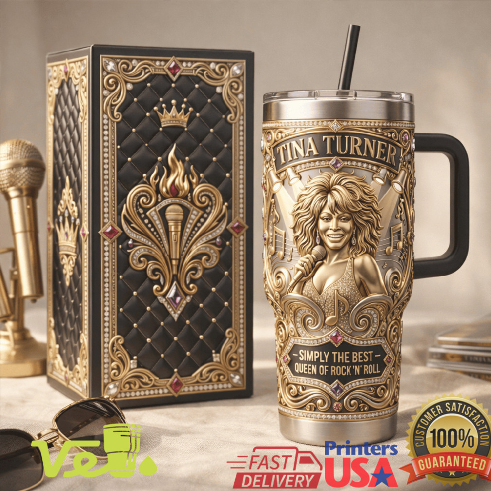 (Tina Turner Simply The Best Queen of Rock N Roll Gold Filigree 40oz Tumbler)