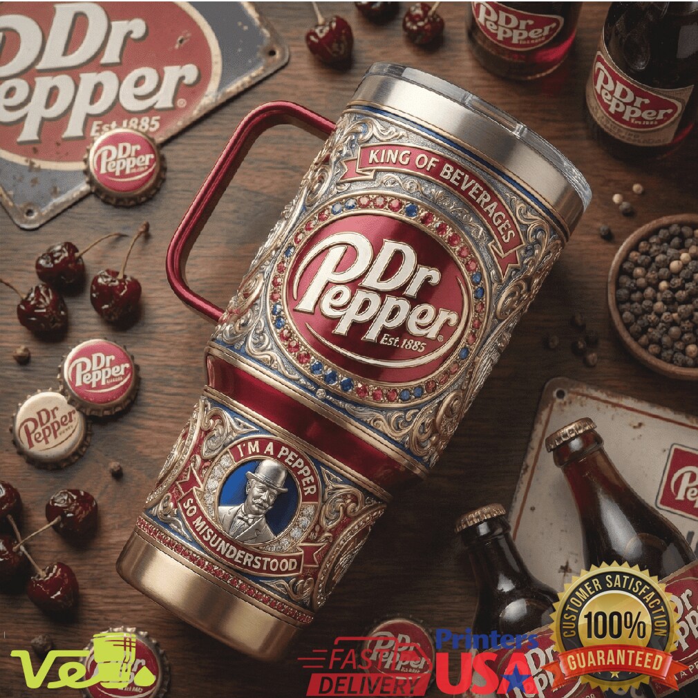 (Vintage Dr Pepper King of Beverages 40oz Tumbler with Handle)