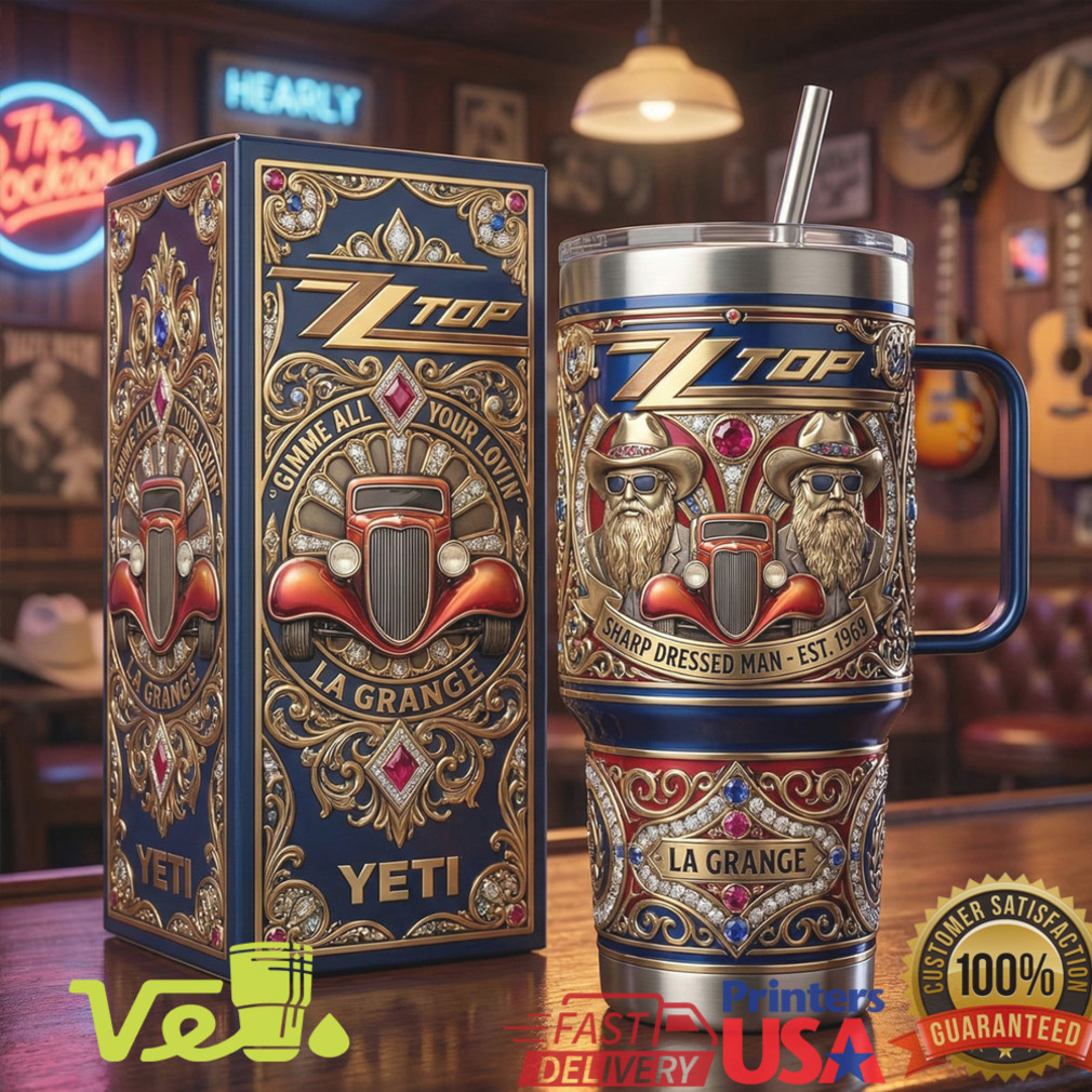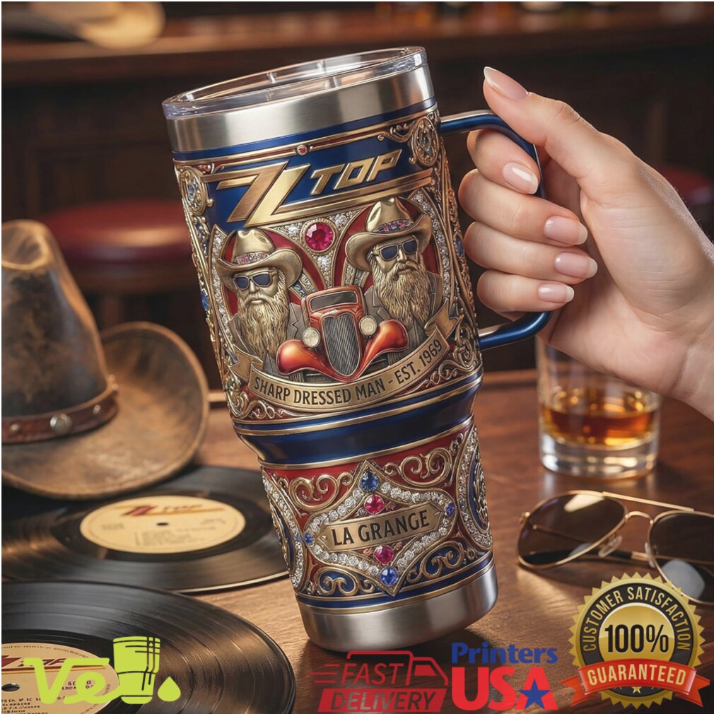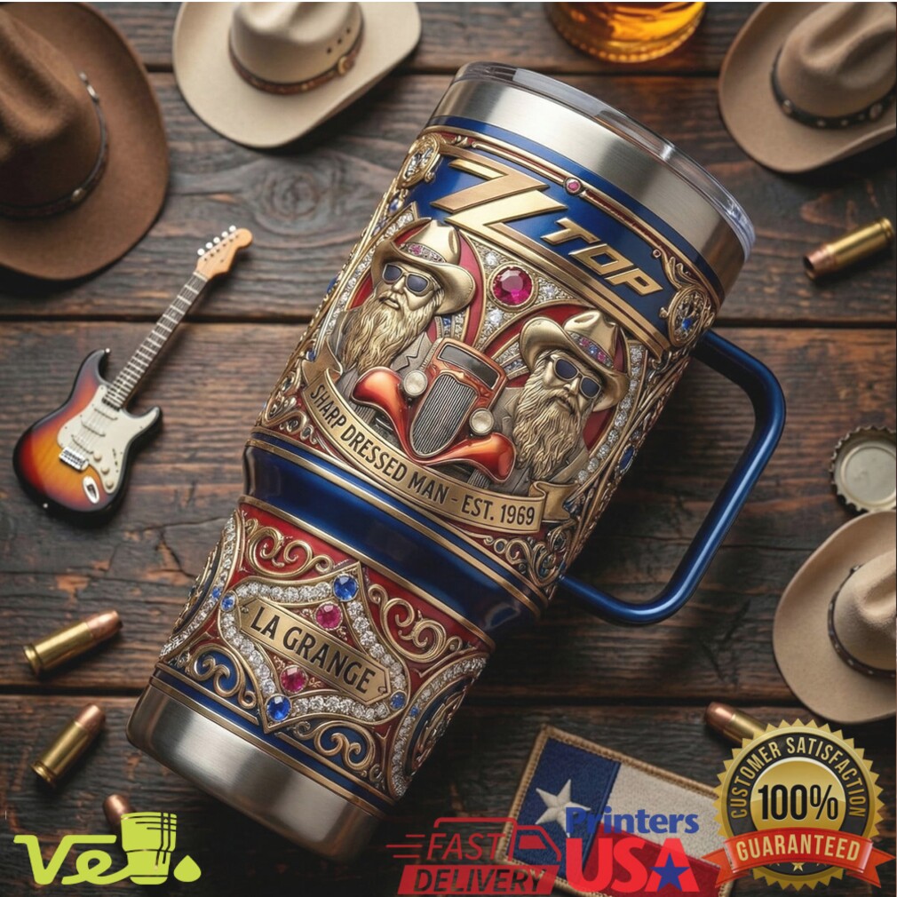 (ZZ Top Sharp Dressed Man 40oz Tumbler La Grange Texas Rock Embossed Style)